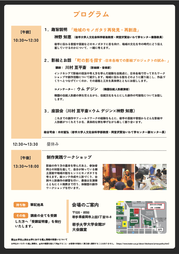 ・名 称: 令和7年度岩手大学リカレント教育プログラム「影を探して、モノガタリをつむぐ ~影絵の創作を通じた地域文化再考の試み~」
