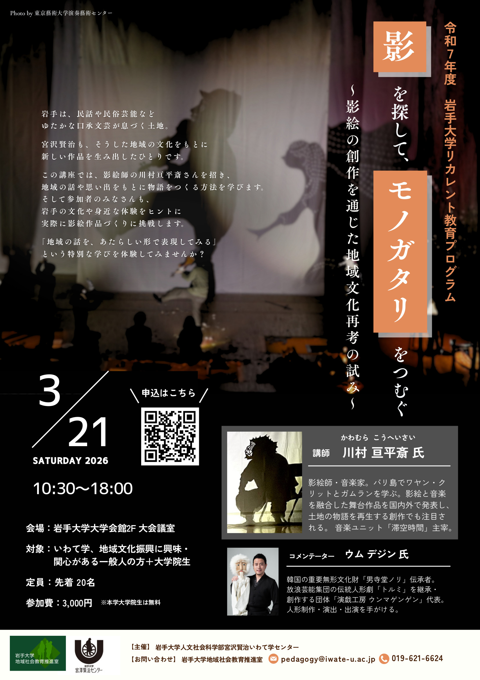 ・名 称: 令和7年度岩手大学リカレント教育プログラム「影を探して、モノ